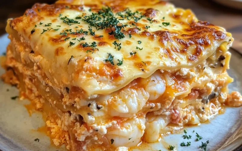 The luxurious blend of tender shrimp, sweet crab meat, and layers of creamy cheese sauce in this seafood lasagna brings gourmet elegance to your