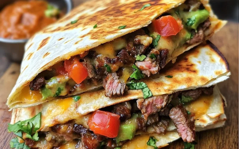 These Loaded Steak Quesadillas are the perfect combination of tender steak, melted cheese, and sautéed peppers and onions. With every bite, you get a