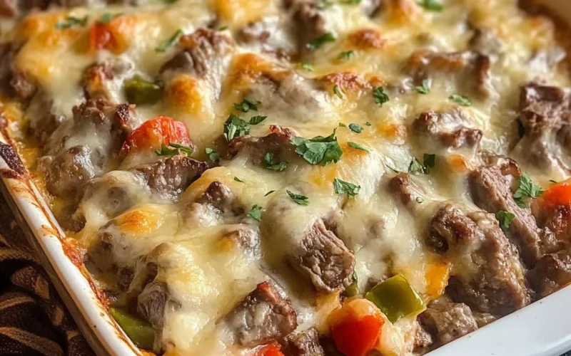 This Philly Cheese Steak Casserole brings all the flavors of the iconic Philly cheesesteak into one convenient, comforting dish. The tender beef, sautéed peppers