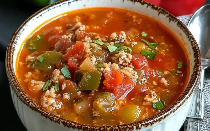 This Stuffed Pepper Soup brings all the delicious flavours of a classic stuffed pepper into a comforting soup form. The combination of tender ground
