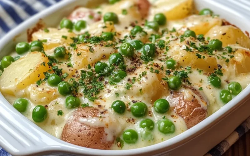 Enjoy your Creamy Peas and Red Potatoes, a perfect dish to celebrate the arrival of spring. The combination of the browned potatoes, creamy sauce,