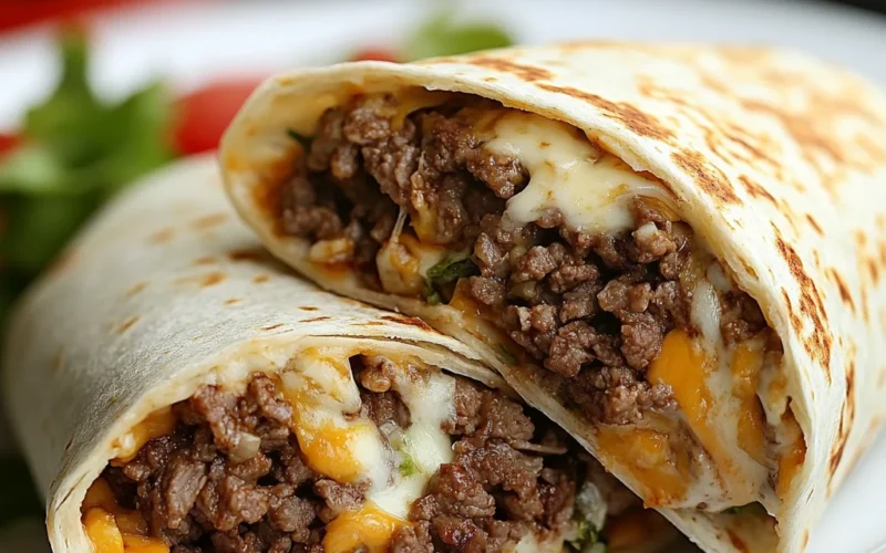 These Nacho Cheese Beef Wraps are packed with bold Tex-Mex flavors, combining seasoned ground beef, tangy nacho cheese sauce, and crunchy Doritos all wrapped
