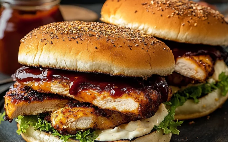 These BBQ Chicken Sandwiches are a delightful fusion of crispy, juicy chicken and gooey cheddar cheese, all topped with a tangy barbecue sauce. The