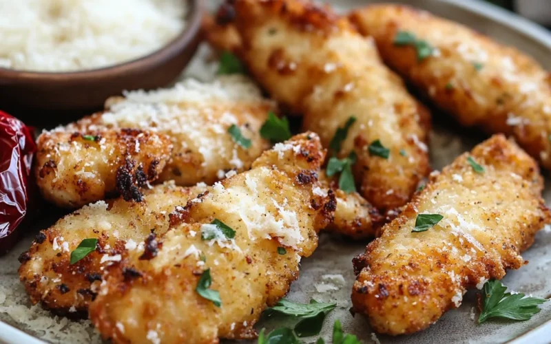 These Garlic Parmesan Chicken Tenders are a perfect blend of crispy texture and savory flavors. The combination of garlic, Parmesan, and panko breadcrumbs creates