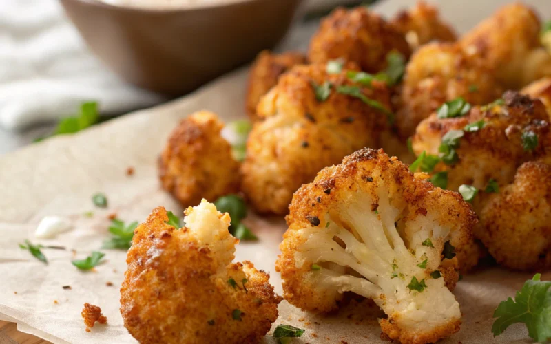 This crispy cauliflower is golden on the outside, tender on the inside, and packed with savory, garlicky flavor. It bakes in the oven, so