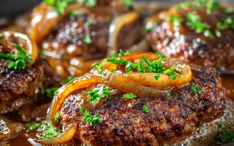 This Salisbury steak is classic comfort food: juicy, flavorful patties simmered in a rich, oniony gravy that tastes like it cooked all day. Using