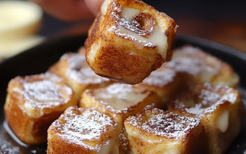 These Cinnamon Roll French Toast Bites bring together the best of two breakfast favorites: cinnamon rolls and French toast. Each bite is crispy on