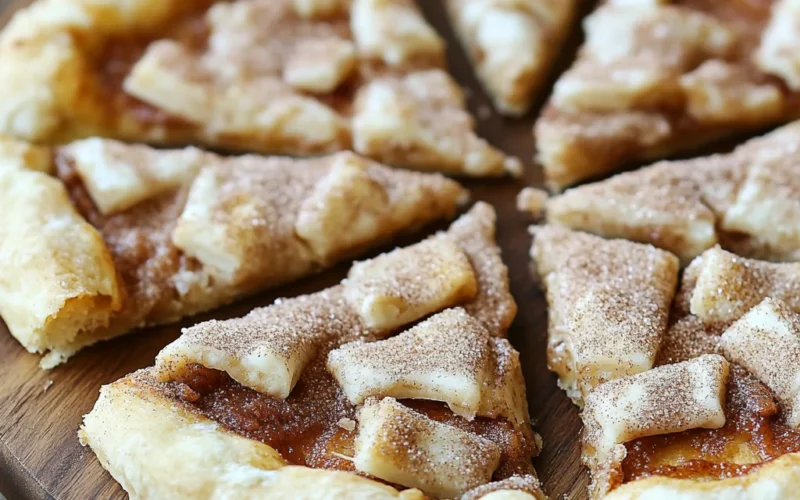 This Cinnamon-Sugar Pizza made with Crescent Rolls is a delightful fusion of classic dessert flavors with a fun twist. The buttery crescent rolls form